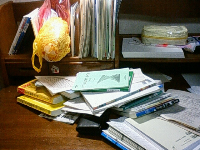 テスト期間中の机はとても大変なコトになります……;